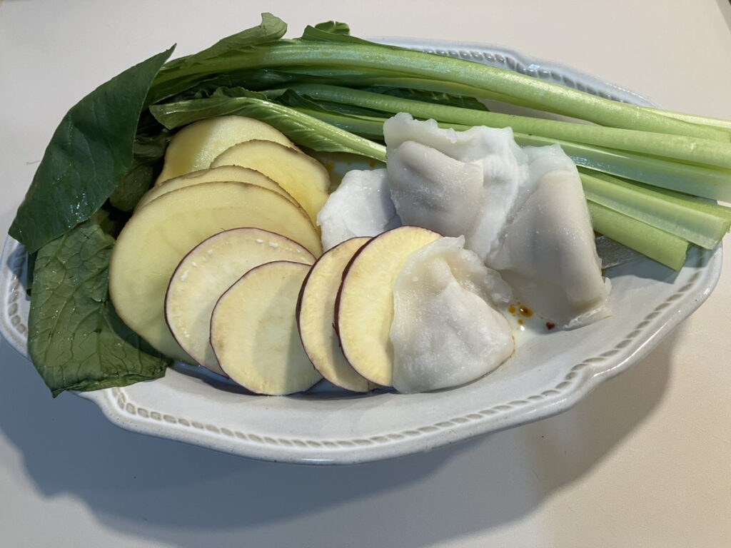 2.板春雨・冷凍水餃子・お好みの野菜を加える。